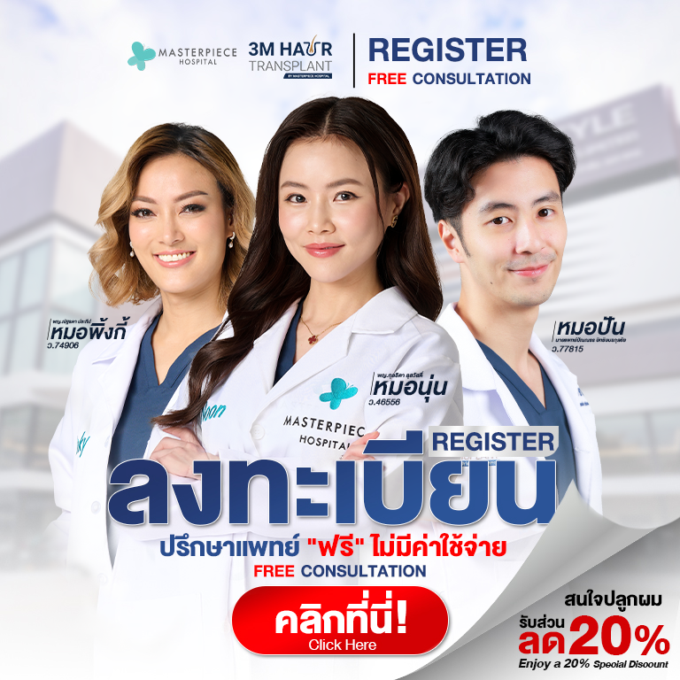 บอกลาผมบาง จบทุกปัญหาเส้นผม โดยแพทย์เฉพาะทางและทีมงานมากประสบการณ์มากกว่า 9 ปี 3M Hair transplant By Masterpiece Hospital ดูแลรักษามาตรฐานโรงพยาบาลดูแลต่อเนื่องหลังทำศัลยกรรมปลูกผมตลอด 2 ปีเต็ม