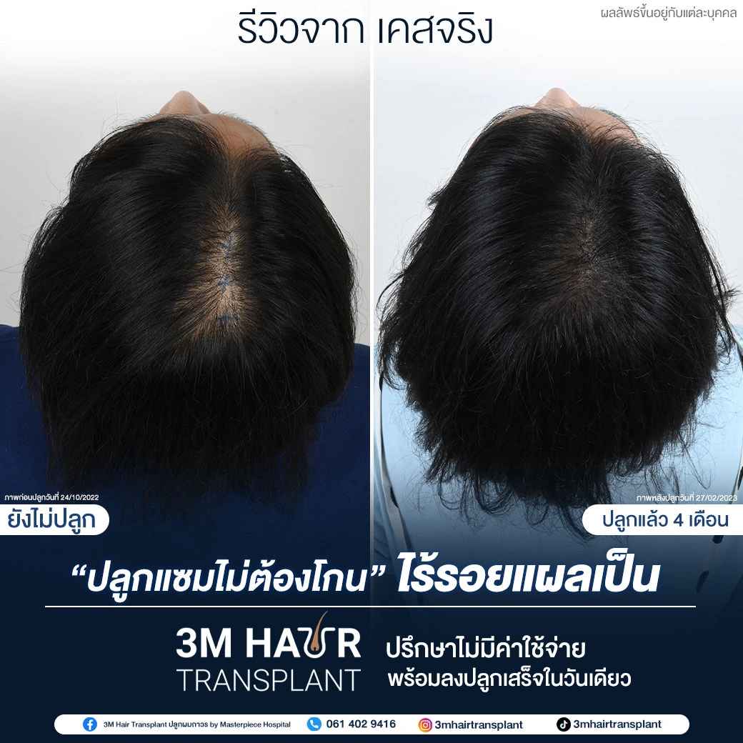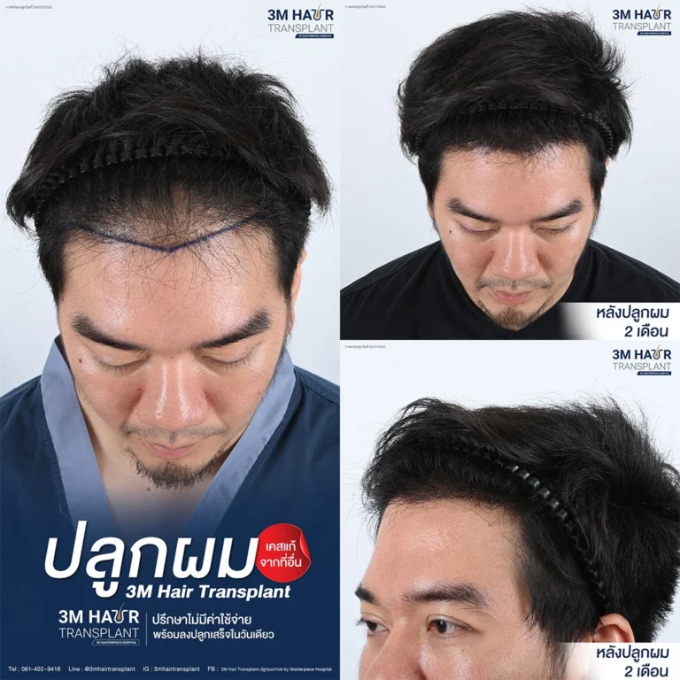 บอกลาผมบาง จบทุกปัญหาเส้นผม โดยแพทย์เฉพาะทางและทีมงานมากประสบการณ์มากกว่า 9 ปี 3M Hair transplant By Masterpiece Hospital ดูแลรักษามาตรฐานโรงพยาบาลดูแลต่อเนื่องหลังทำศัลยกรรมปลูกผมตลอด 2 ปีเต็ม