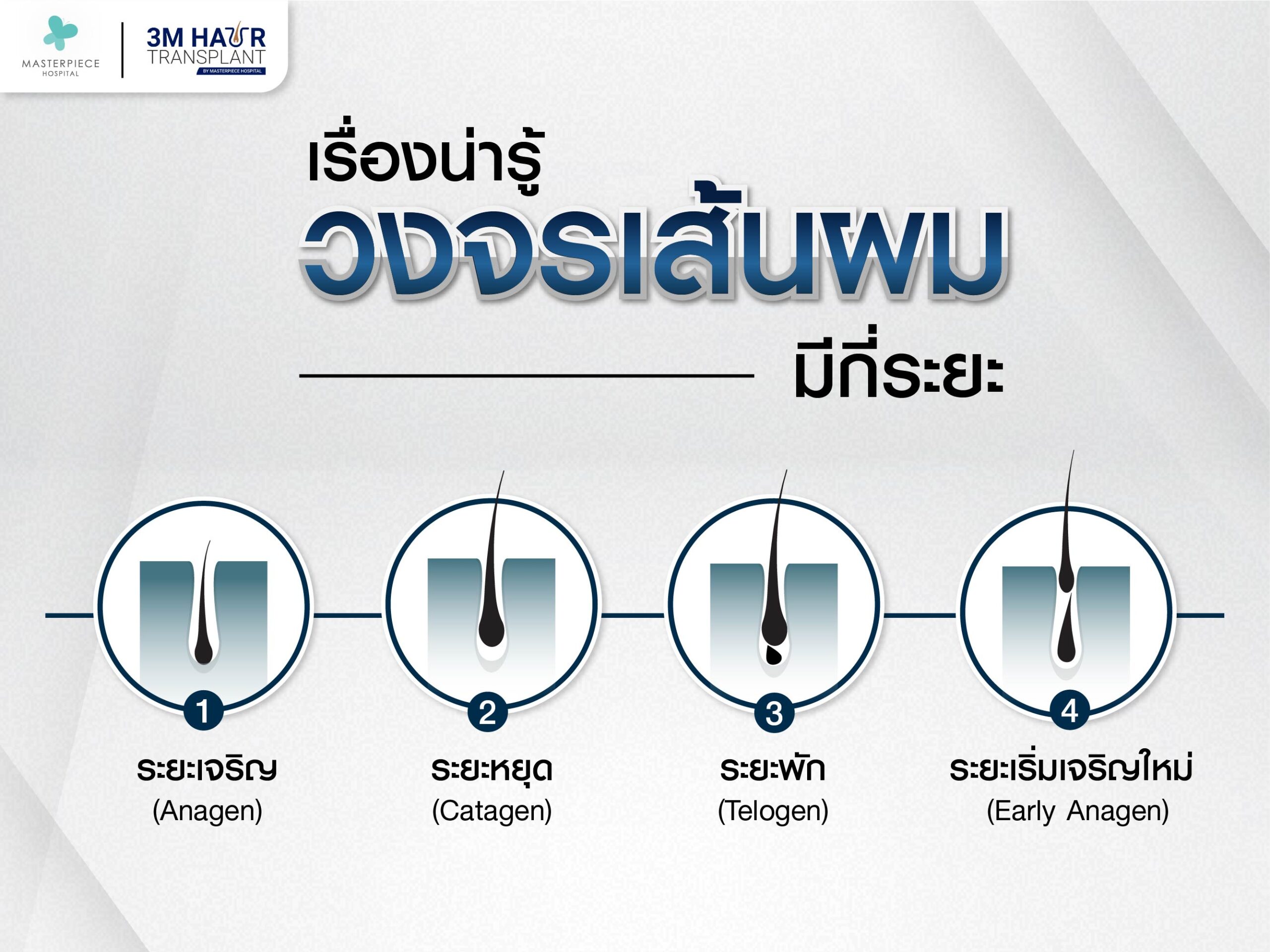 อีกหนึ่งเรื่องน่ารู้เกี่ยวกับเส้นผม คือวงจรชีวิตของเส้นผมแบ่งออกเป็นทั้งหมด 4 ระยะ ซึ่งแต่ละระยะมีบทบาทสำคัญในการเจริญเติบโตและการหลุดร่วงของเส้นผม ดังต่อไปนี้